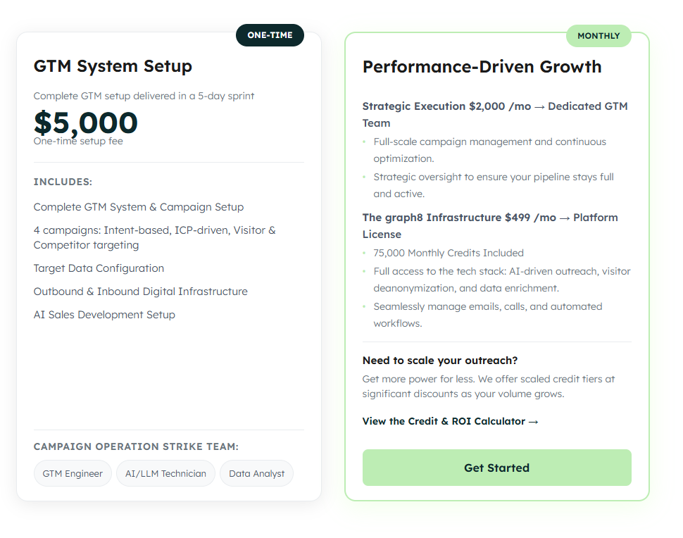 CIENCE lists a $5,000 one-time GTM System Setup, delivered as a structured onboarding sprint. This setup is focused on building the outbound foundation rather than immediate appointment output.