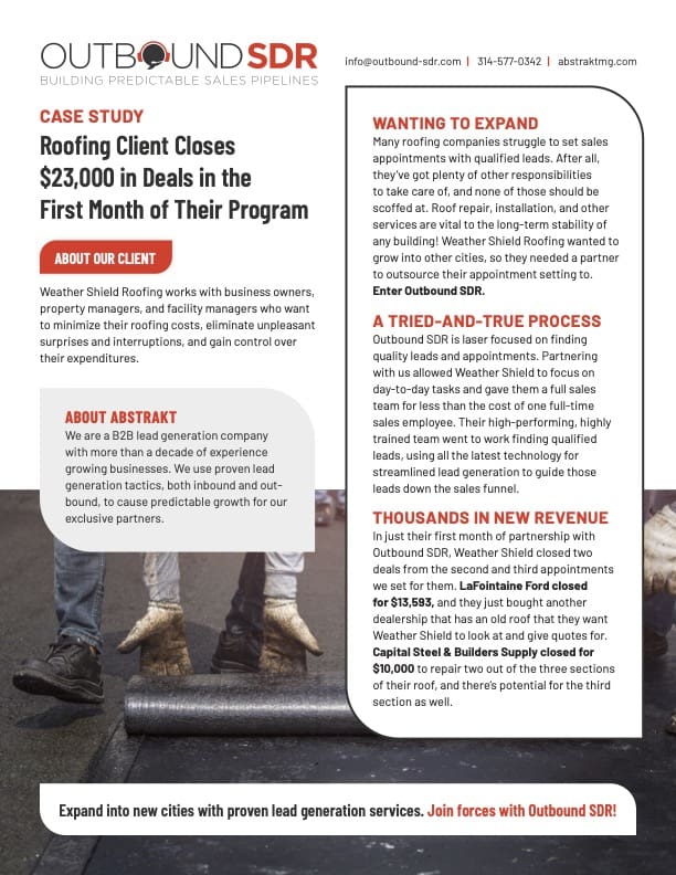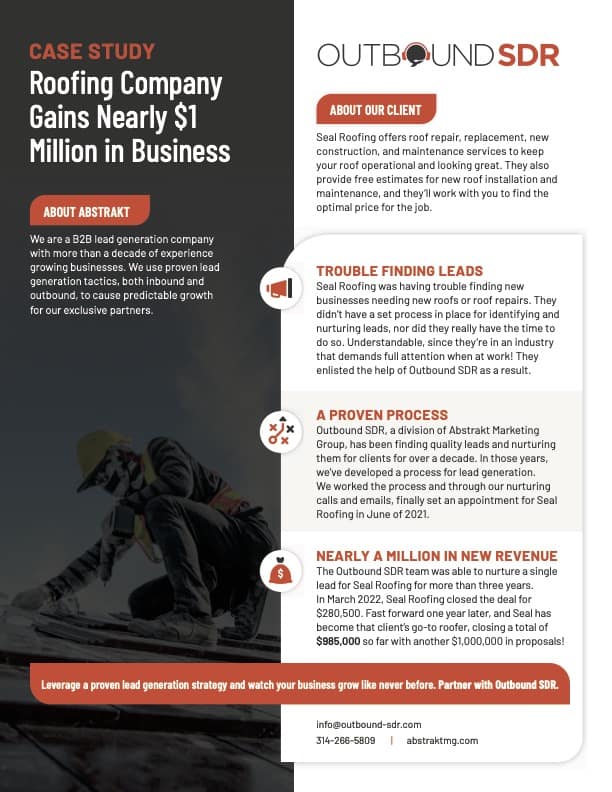 Roofing company who has been a partner of ours for over two years now.They have over 250 leads in their pipeline. Of those, $6 million is in proposal & $1.7 million has already been closed through 10 closed deals, and another 39 still being nurtured.